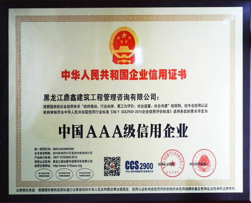 中國AAA級信用企業(yè)證書